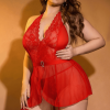 Feel confident and beautifully supported in this plus size red lace and mesh halterneck babydoll, designed to flatter curves with a comfortable fit and soft, flowing drape. Featuring a plunging lace bodice, sheer mesh skirt, and an open back halter tie, it’s finished with suspender straps for a standout lingerie look made for special moments. Key features• Plus size fit designed to flatter curves• Red lace bodice with plunging V neckline• Sheer mesh babydoll skirt with soft drape• Halterneck tie and open back detail• Waist band detail for a defined, flattering shape• Suspender straps for lingerie styling• Mini length, ideal for nightwear or special occasions