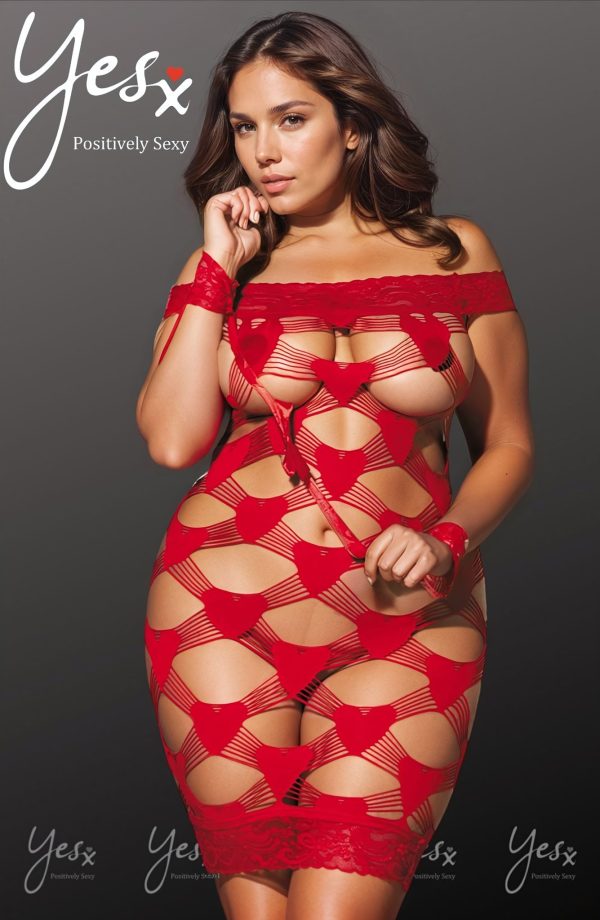 Sexy plus size dress with all over love hearts! – this item also includes the sexy handcuffs! arrives packaged.