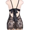 A lacey little number, this design features eyelash lace finish to hems and bra. A key hole design on he front and satin ribbon tie to the back. The thong is included making this a lovely set. Item arrives packaged in a Yesx satin bag.