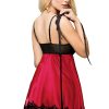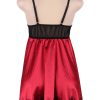 Beautiful flowing red satin babydoll with black lace cups. The straps are adjustable and the hem is edged with deep eyelash lace. Matching lace blindfold is included. This item arrives packaged in a Yesx satin bag.