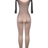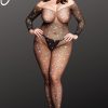 Shine bright and celebrate your curves with this stunning plus-size long-sleeved, crotchless bodystocking, adorned with sparkling diamante accents! Designed to hug your figure in all the right places, this sheer, stretchy piece combines elegance with a touch of daring. The open crotch detail adds a playful edge, while the long sleeves bring a hint of sophistication. Perfect for a night when you want to feel sexy, confident, and completely unforgettable, this bodystocking is made to embrace your curves and let you sparkle! Please note the thong is not included.