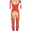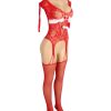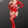 Get ready to sleigh in this festive and flirty Christmas long sleeved bodystocking! Crafted for the season, this piece features a classic fishnet design with playful suspender straps and cosy, thigh-high fishnet stockings to add a touch of allure. Adorned with cute pom-poms, a satin red bow, and a fluffy white neck ring, it’s as fun as it is seductive. Perfect for layering with your favourite lingerie or wearing solo for a holiday twist, this bodystocking is your ultimate outfit for a merry and mischievous night! Please note the models white thong is not included.