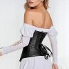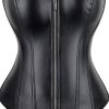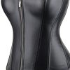 Black Leather-Look Zip-Up Corset with Adjustable Lace-Up Back Make a bold statement with this sleek black leather-look corset, designed to sculpt and flatter your figure with edgy sophistication. Featuring a smooth faux leather finish, a secure front zip closure, and an adjustable lace-up back, this corset offers both fashion and function in one stunning piece. Perfect for gothic styling, clubwear, cosplay, or lingerie looks, this versatile corset elevates any outfit with fierce confidence and a flattering silhouette. Key Features:• Sleek black leather-look finish for a bold, edgy vibe• Front zip-up closure for easy wear and secure fit• Adjustable lace-up back for custom shaping• Supportive boning to enhance your silhouette• Versatile styling – ideal for alternative fashion, burlesque, or night out Pair with jeans, skirts, or layered over a dress for a powerful, fashion-forward look. (Please note: corset only.)