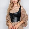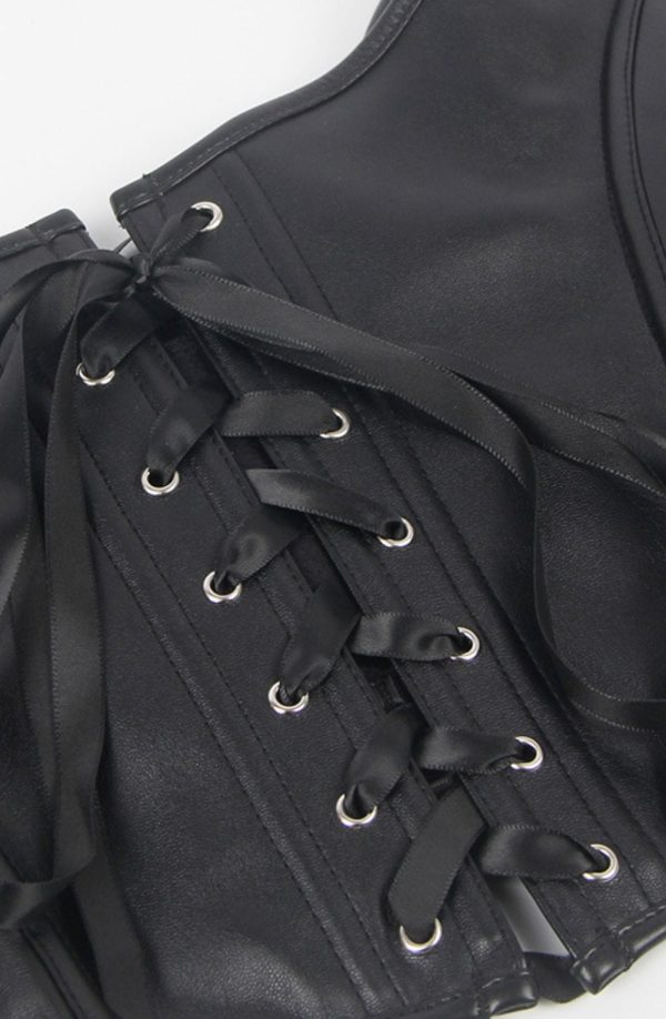 Leather-Look Corset-Inspired Crop Top – Sizes Up to 6XL Step up your style game with this fierce leather-look corset-inspired crop top, designed to contour your curves with comfort and confidence. Featuring supportive shoulder straps, structured seams, and an adjustable lace-up back, this edgy top blends corset styling with modern wearability. The glossy faux leather finish adds a bold touch, while the inclusive sizing ensures a flattering fit for every body, up to 6XL. Perfect for night outs, festival looks, or layered street style. Key Features:• Corset-style cropped top with supportive shoulder straps• Sleek leather-look (faux leather) fabric with glossy finish• Adjustable lace-up front & Black for custom shaping• Cropped length • Flattering neckline • Available in sizes XS to 6XL• Ideal for clubwear, gothic fashion, layering, or festivals Turn heads and embrace your bold side in this statement-making corset-inspired crop top – designed for style without compromise.  (please note this is the crop top only)