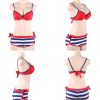 A striking 3 piece set that includes a bikini top and two styles of brief which offers a great mix and match option. The red bikini top features padded cups underwired cups for a beautiful cleavage and pretty adjustable polka dot straps for a great fit. This top features a tie back to achieve the perfect fit. The tie side brief option allows you choose how you tie these cheeky bottoms for a flattering and comfortable fit. The stripy hot pant style briefs option are perfect for a bit more coverage. This item arrives packaged in a YesX satin bag.