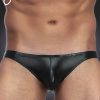 Sleek and sexy black wet look briefs that are tight-fitting but stretchy which make these briefs ideal for day or night wear.