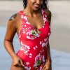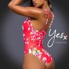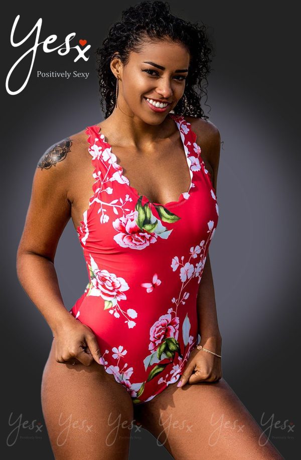 Stunning one piece swimsuit featuring a beautiful floral design and scalloped edge trim. This swimsuit features lightly padded wire free cups and adjustable shoulder straps. This item arrives packaged in a YesX satin bag.