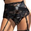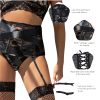 Sexy suspender belt and matching thong with stunning floral lace and gorgeous satin band detail. The suspender belt features lines of boning at the front and the back has mesh panelling with a lace up fastening which all combined creates a seductive silhouette. The suspender straps are removable and adjustable. Pair with stockings to complete the look. This item arrives packaged in a YesX satin bag.