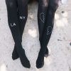 Colour: Black tights with Light Grey print. Thickness: 120 denier. Unless they have X-ray vision no one will be able to see through these opaque tights.