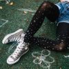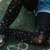 Paparazzi awaits with the Hollywood Boulevard tights that feature an allover star print. Put on oversized sunglasses and let them snap away. Colour: Black tights with Light Grey print. Thickness: 100 denier. Your entire leg will be getting Zohara love with allover prints. Both sides are not created equal with allover tights so please look at the foot of the tights before wearing to ensure you don’t step on the print. (The front print will be lower than the back.) Made from Cotton. Unless they have X-ray vision no one will be able to see through these opaque tights. Hand print no two are the same.