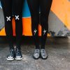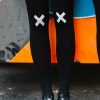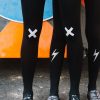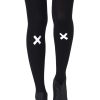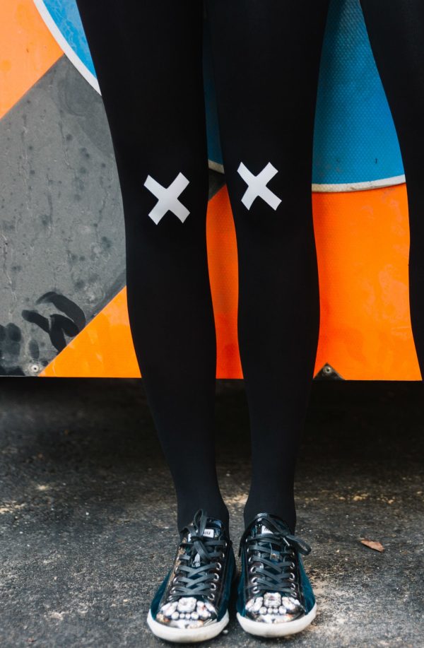 Unseal your lips with the Kiss and Tell tights that feature a reversible graphic that lets you choose how to start or end the convo. Colour: Black tights with Light Grey print. Thickness: 120 denier. Unless they have X-ray vision no one will be able to see through these opaque tights. Is the party in the front or the back? You choose with reversible tights where to place all the fun. Hand print no two are the same.