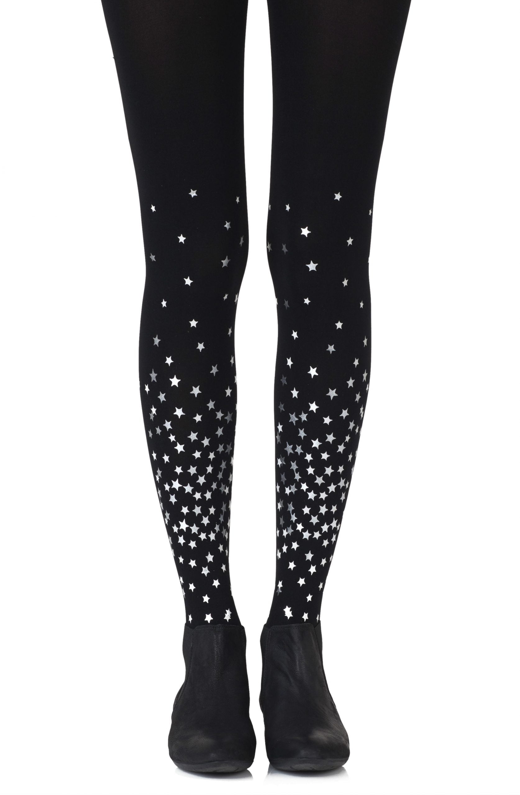 Stand out from the crowd with Rise and Shine tights that feature an allover star print. Colour: Black tights with Grey Silver print. Thickness: 120 denier. Your entire leg will be getting Zohara love with allover prints. Both sides are not created equal with allover tights so please look at the foot of the tights before wearing to ensure you don’t step on the print. (The front print will be lower than the back.) No doubt you will shine with our metallic prints. Please note that these prints require extra care when washing and will naturally fade with wear. Unless they have X-ray vision no one will be able to see through these opaque tights. Hand print no two are the same.