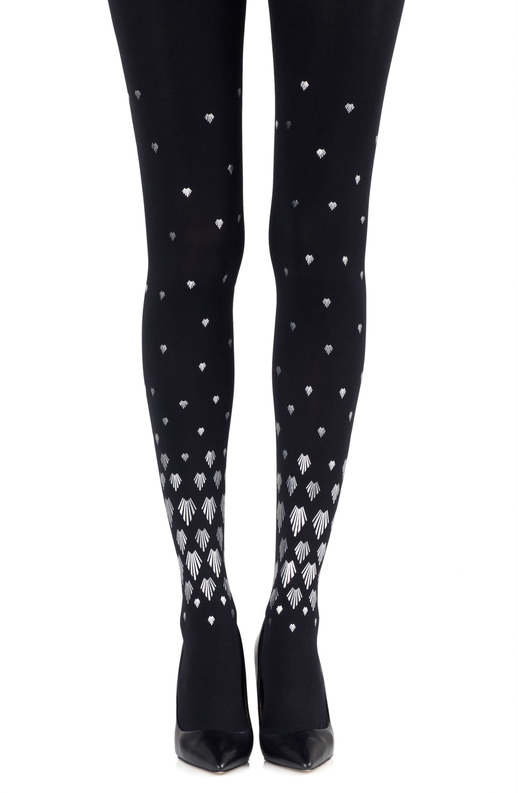 Relax knowing you look sea-riously beautiful in our Shell Out tights that feature a shell-inspired allover print. Colour: Black tights with Silver print. Thickness: 120 denier. Your entire leg will be getting Zohara love with allover prints. Both sides are not created equal with allover tights so please look at the foot of the tights before wearing to ensure you don’t step on the print. (The front print will be lower than the back.) No doubt you will shine with our metallic prints. Please note that these prints require extra care when washing and will naturally fade with wear. Unless they have X-ray vision no one will be able to see through these opaque tights. Hand print no two are the same.