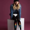 United-Colors print tights. Colorful print on black designed tights. Black opaque tights-120 Denier. Colorful print on both legs. This print tights can be worn with the print either at the front or at the back.