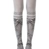 Mai Tais for two! Strum your ukelele with Waikiki Nights sock-style tights that mix a palm leaf illustration and stripes. Colour: Light Grey tights with Black print. Thickness: 100 denier. Made from Cotton. Unless they have X-ray vision no one will be able to see through these opaque tights. Get athletic with our two-sided knee-high sock-style print. Hand print no two are the same.